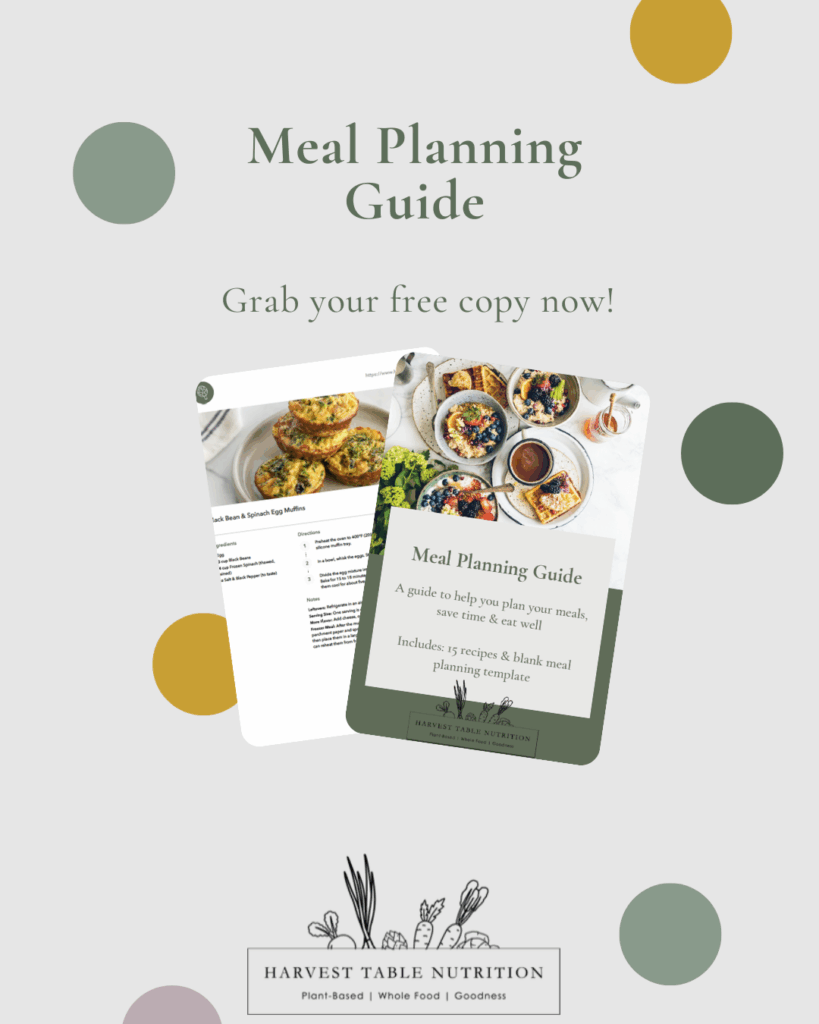 A guide to help you plan your meals, save time & eat well. Includes a meal planning template & 15 recipes perfect for meal prep!