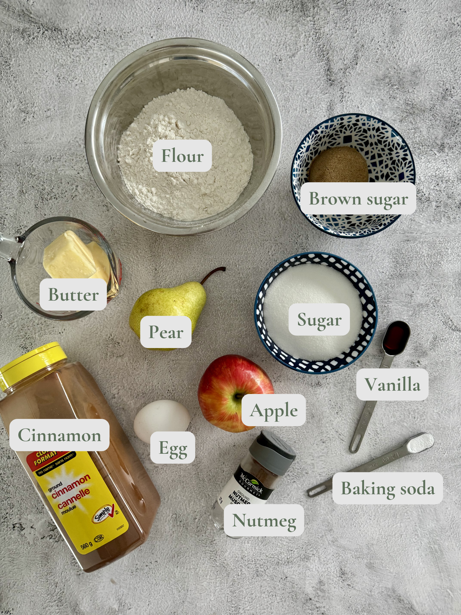 I live on an apple orchard, and in September and October I have more apples than I know what to do with. My neighbour grows pears, and he dropped some of his pears off, so this recipe was made out of necessity since I had too much fruit in the house to eat! I'm also not a huge fan of pie, so it wasn't going to be an apple pie that I made. I love the flavours of apple pie, but there's just something about it that I don't love. So I created this loaf recipe that combines all the flavours of fall and pie, but is a quick bread. I hope you enjoy it as much as I do!