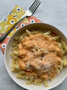 • Balanced: you’re getting some veggies from the tomatoes, healthy fats and a little protein from the cashews and carbohydrates from the pasta. Pair this with a big, green salad and you’ve got a well balanced meal.